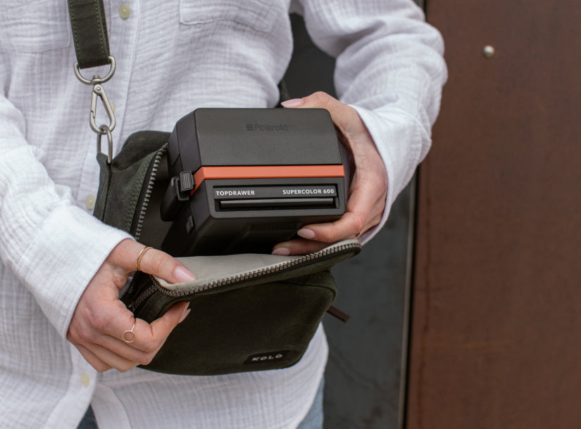 Meet the Carson Camera Bag: perfect for Polaroid adventures. Safely store your refurbished camera and two film packs. Quick access with YKK Vislon zipper, plus a discreet back pocket for light-safe film storage. Elevate your Polaroid journey in style and function.