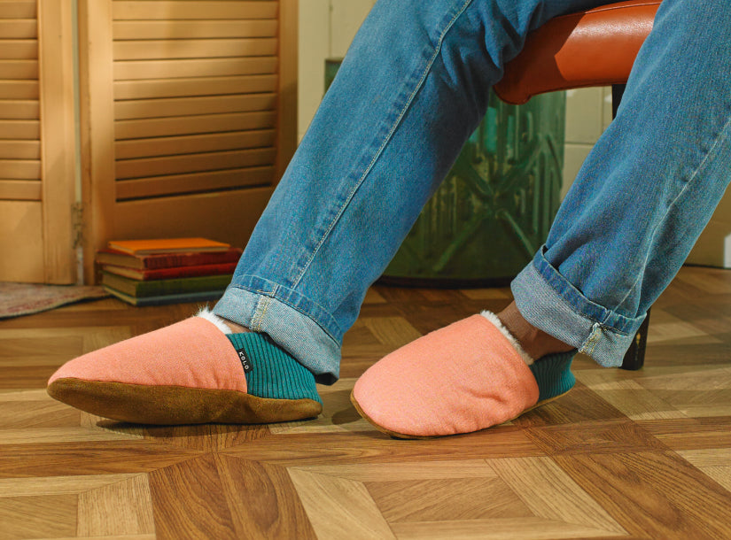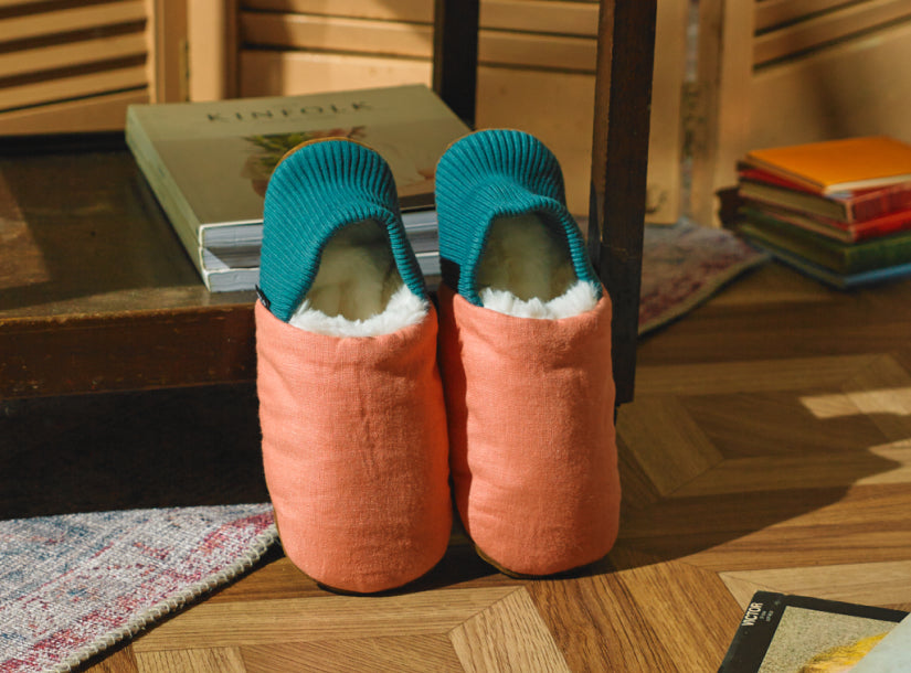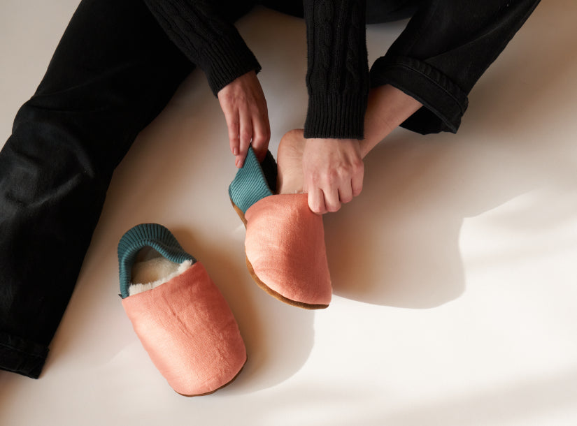 Irish linen exterior, lined with faux fur. Ensuring your feet stay warm and comfortable throughout the day. Italian suede soles offer a perfect balance of durability and grip.