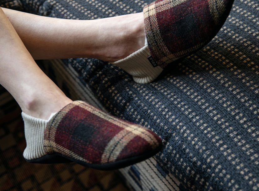 Heritage Scottish wool tweed exterior. Soft faux-fur lining ensuring your feet stay warm and comfortable throughout the day. Italian suede soles offer a perfect balance of durability and grip.