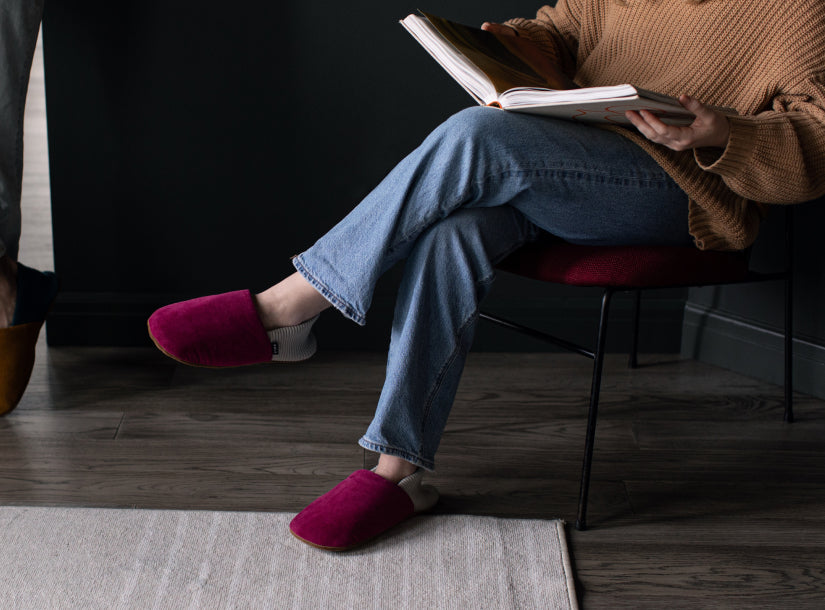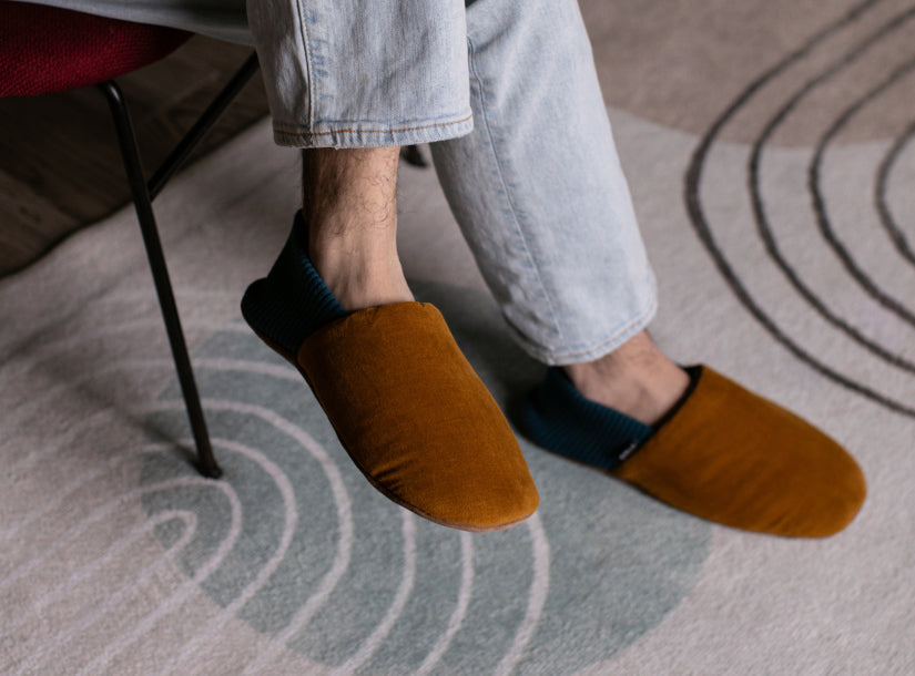 Cotton Velvet exterior milled in Alsace, France. Corduroy lining, ensuring warmth and comfort throughout the day. Italian suede soles offer a perfect balance of durability and grip.