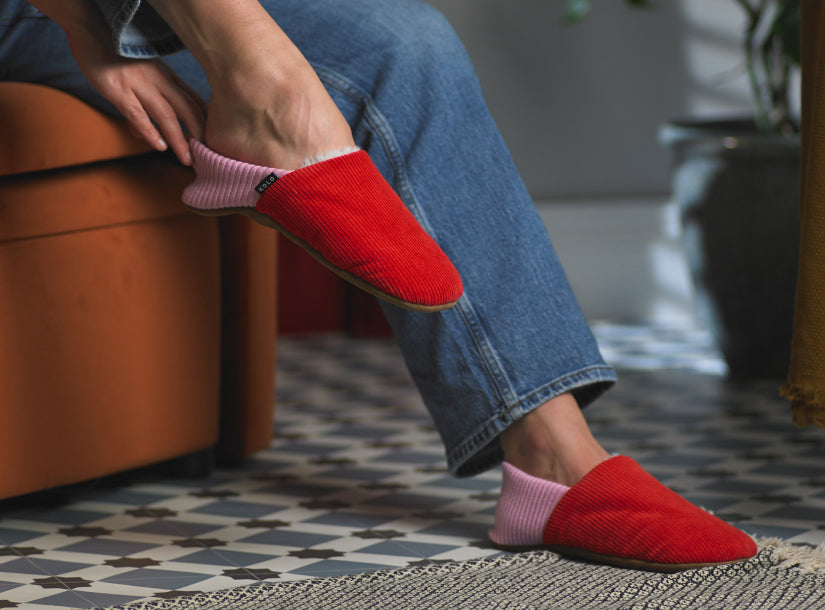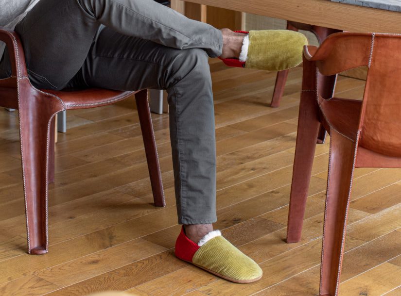 French corduroy exterior. Soft faux-fur lining ensures your feet stay warm and comfortable throughout the day. Italian suede soles offer a perfect balance of durability and grip.